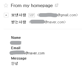 메일 제목이 From my homepage 잖아요? 이건 제가 수정한 제목이고 원래 default 제목은 아래처럼 Contact form submitted 이었어요!