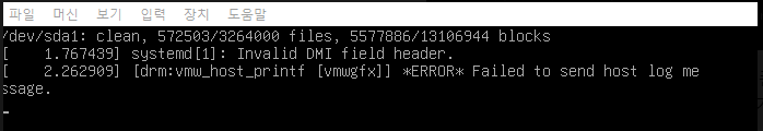 Step 1에서 용량을 늘려주고 재부팅을 해보면 아래처럼 부팅 중에 에러가 발생한다.