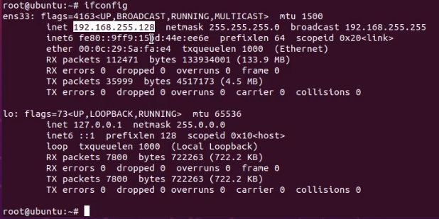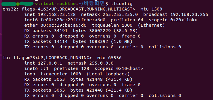 교수님이 ifconfig 명령을 쳐서 ip를 확인하라고 하셨는데