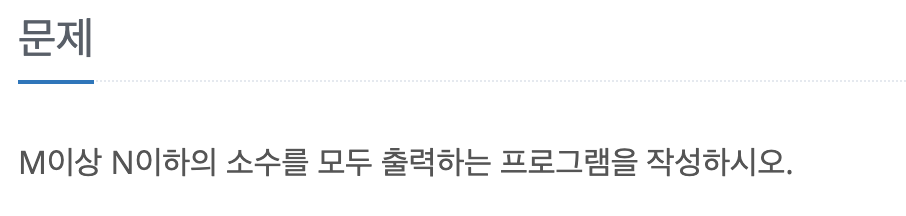 첫째 줄에 자연수 M과 N이 빈 칸을 사이에 두고 주어진다. (1 ≤ M ≤ N ≤ 1,000,000) M이상 N이하의 소수가 하나 이상 있는 입력만 주어진다.