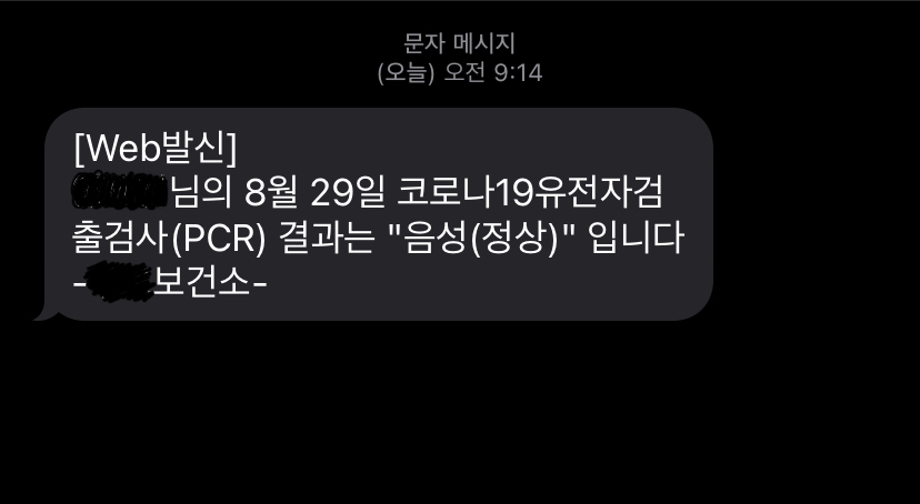 제가 올해 초에 길거리에 있는 일반선별진료소에서 받았을 때는 검사 결과가 카톡으로 왔었는데! 보건소는 문자로 온다고 하더라구요!