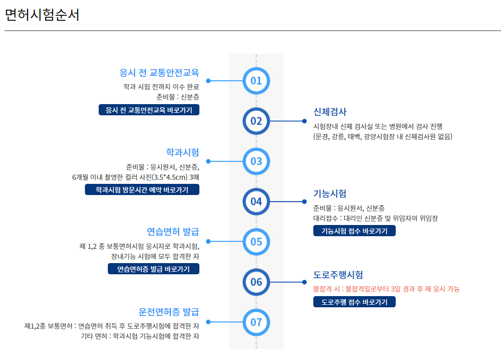 1) 학과시험 응시 전 교통안전교육 (신분증 필요. 학원의 경우 학원증)