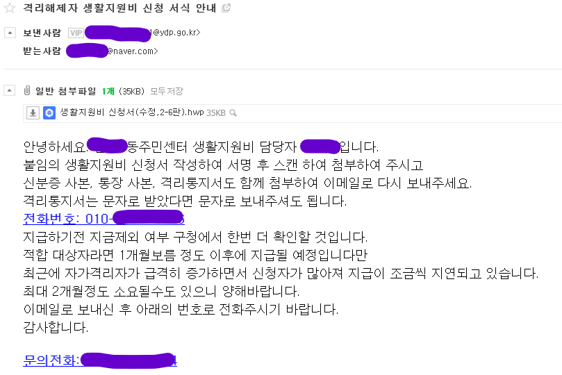 온라인으로도 가능하다고 하셔서 저는 동 주민센터에 연락해서 메일로 작성해야할 양식을 제공받았습니다!