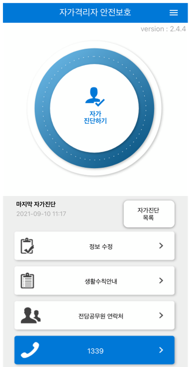 자가격리 며칠 후에 담당 공무원님 배정받고 자가격리 어플 설치했습니다!
