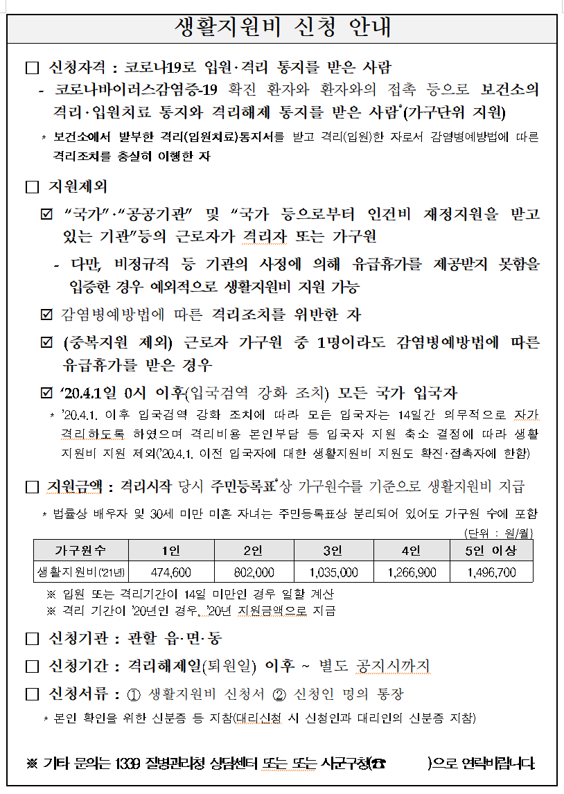 앗 그리고 가장 중요한! 코로나 자가격리 생활지원금!!